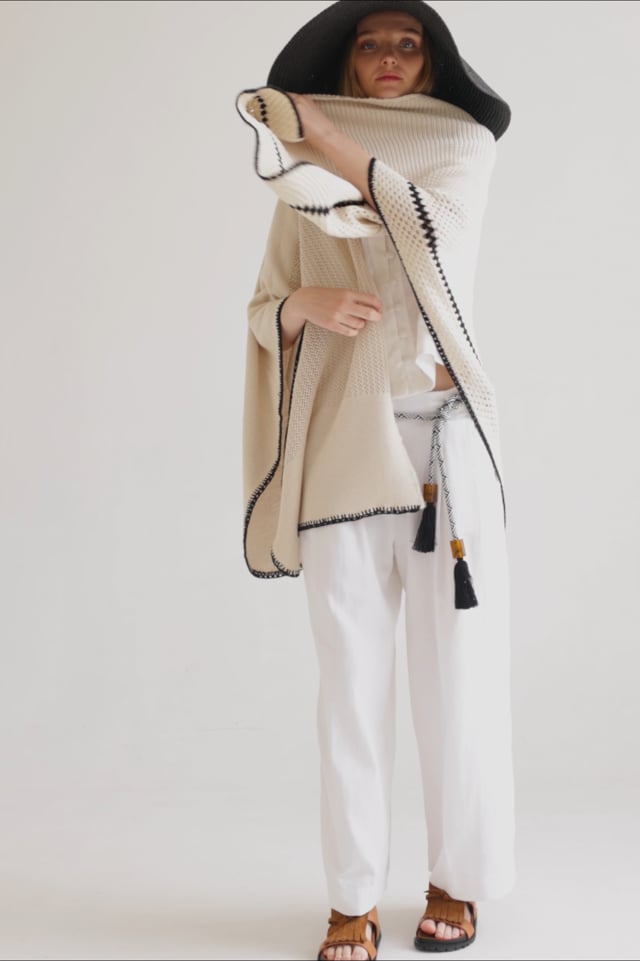 Ruana tejida en algodón con delicada terminación de crochet. Su mezcla de puntos y combinación de colores crean una textura única.,ideal para completar cualquier look.